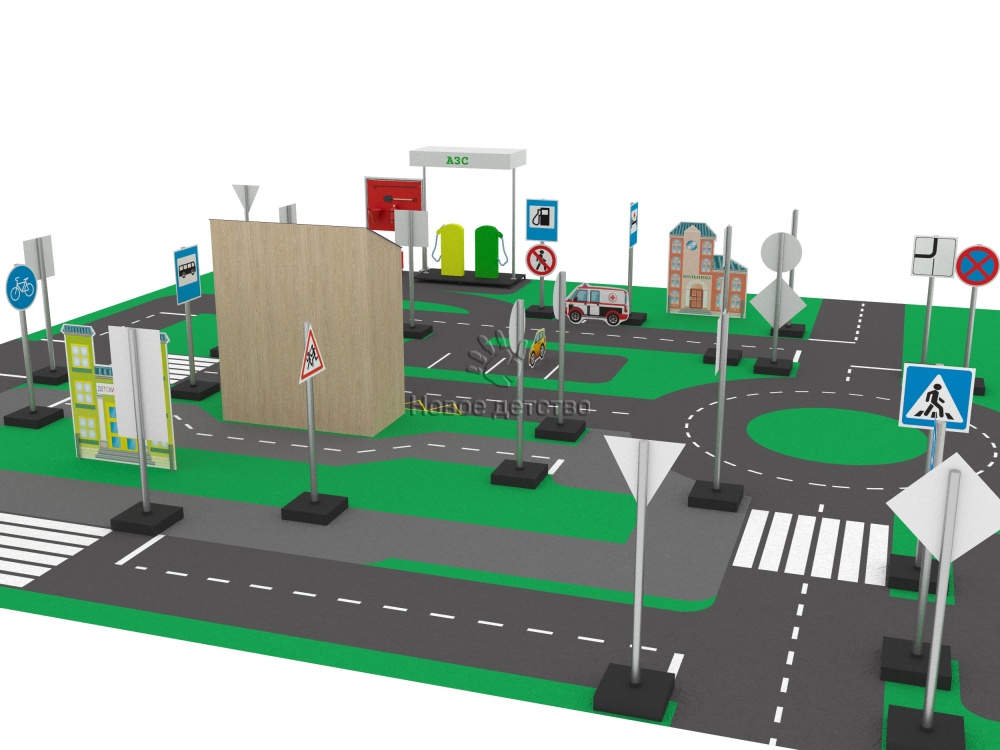 Размер, количество и специфика элементов позволяют проводить как масштабные занятия, так и просто приятно проводить время прогулки, разыгрывая бытовые ситуации - на заправке, остановке, магазине, больнице и т.д.