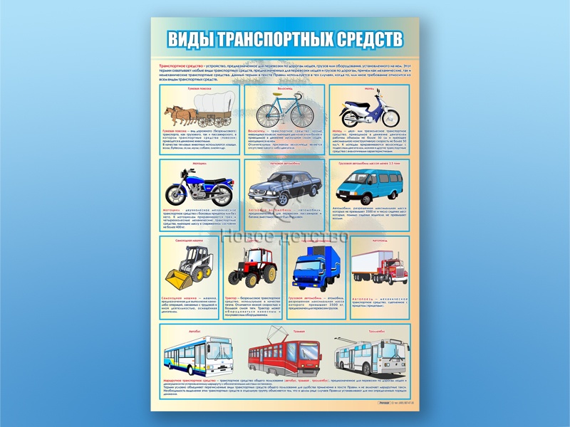 Стенд представляет собой информационную панель, на которой размещены сведения о видах транспортных средств.