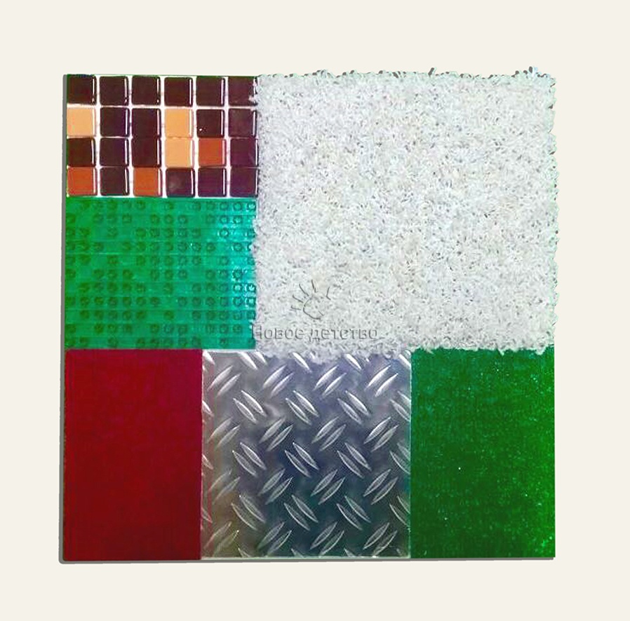 Тактильно-развивающая панель “Текстуры” RG033 состоит из шести тактильных покрытий и служит для развития тактильных ощущений.